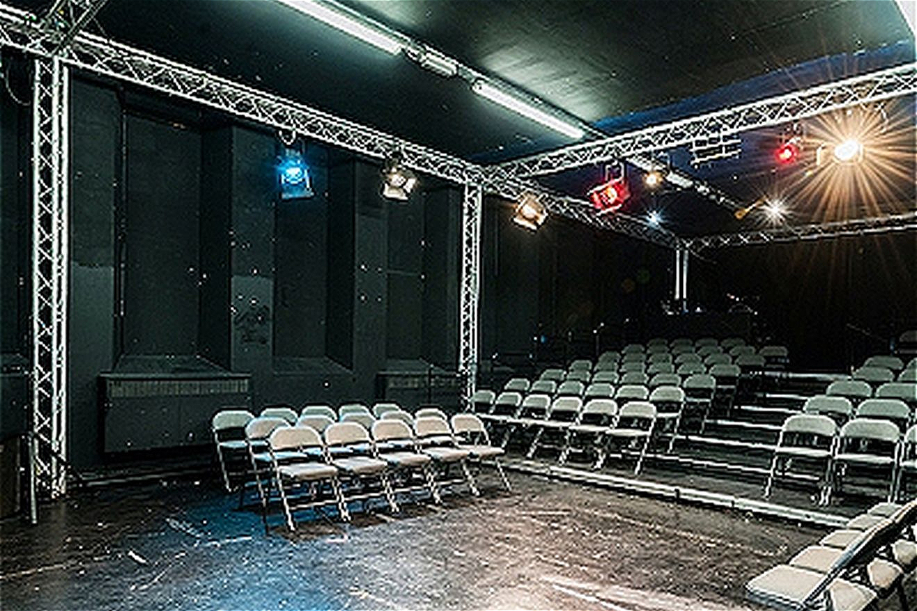 Upstairs our theatre space, a large main house theatre with seating for 120 in our modular raked seating system. Perfect for inspiring theatre shows, solo musicians/songwriters, captivating panel talks, screenings and much more.